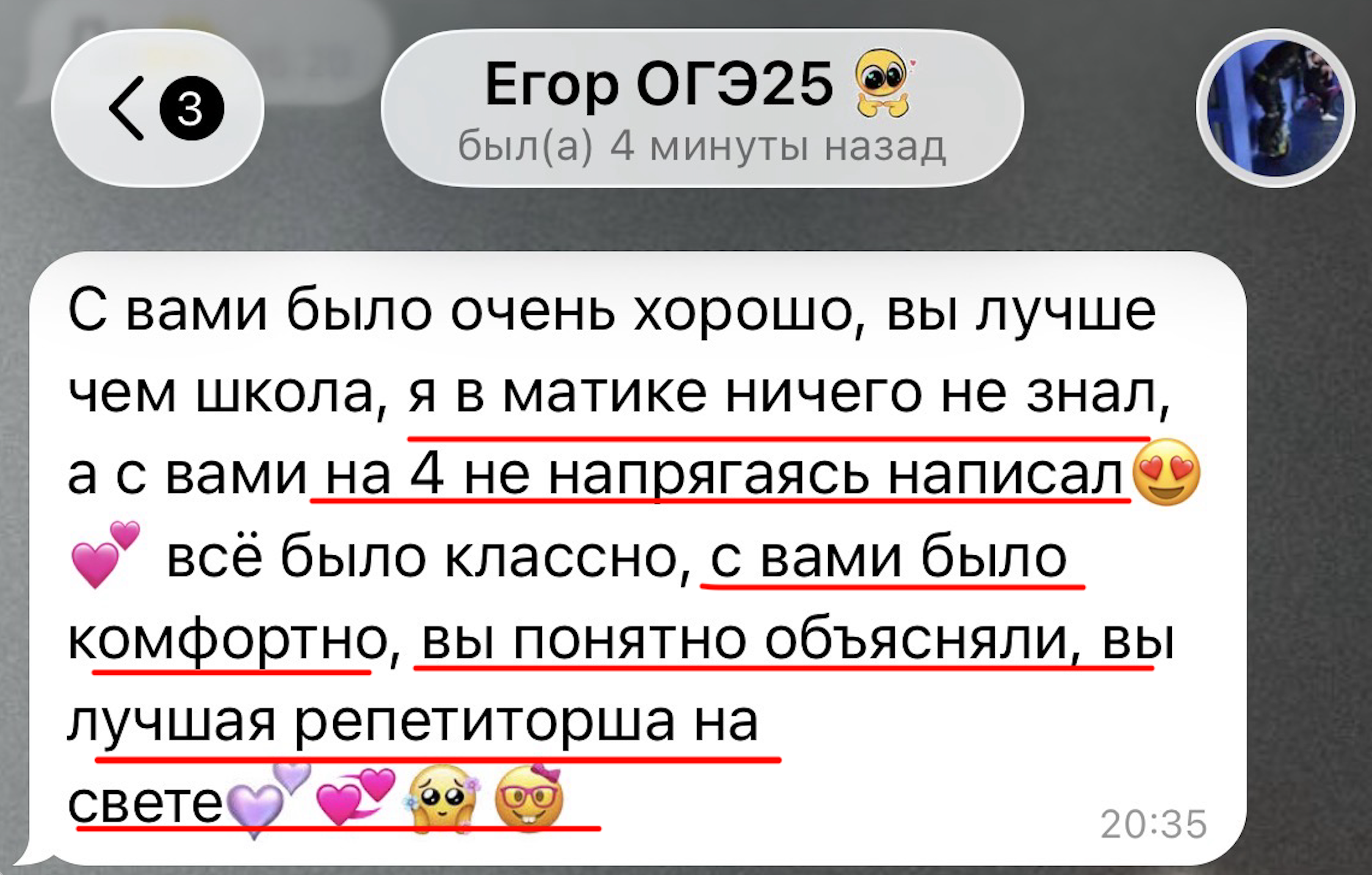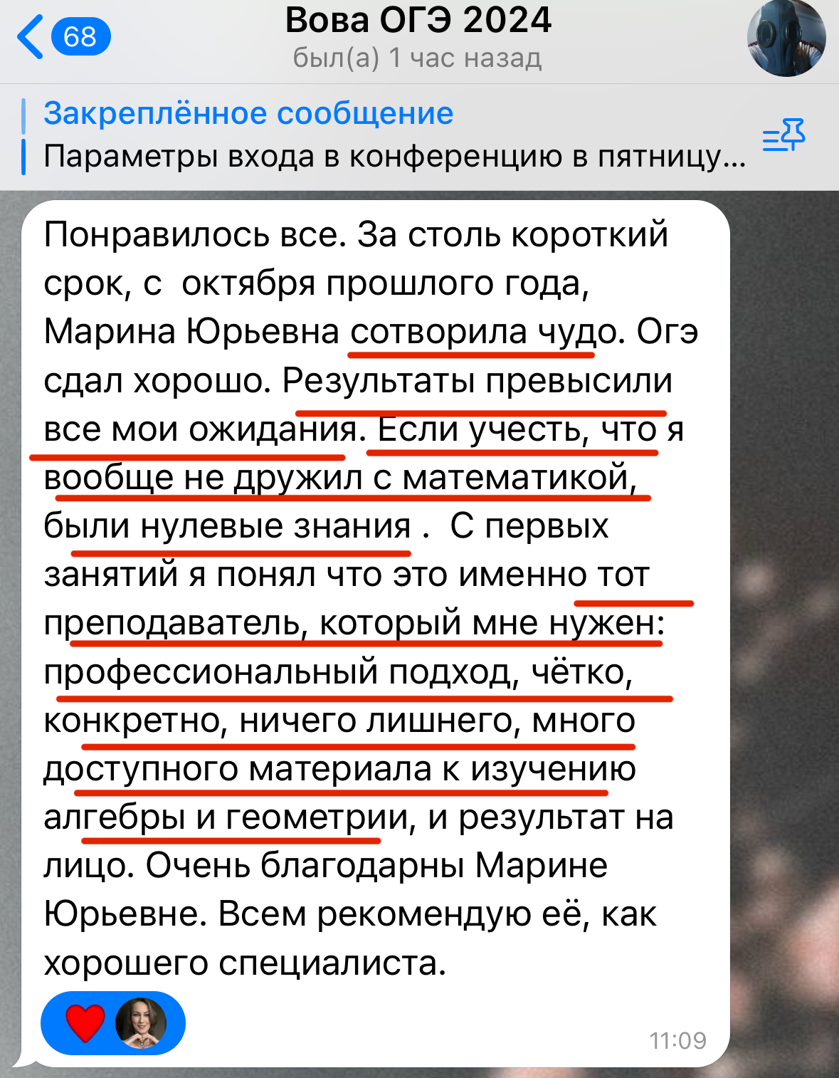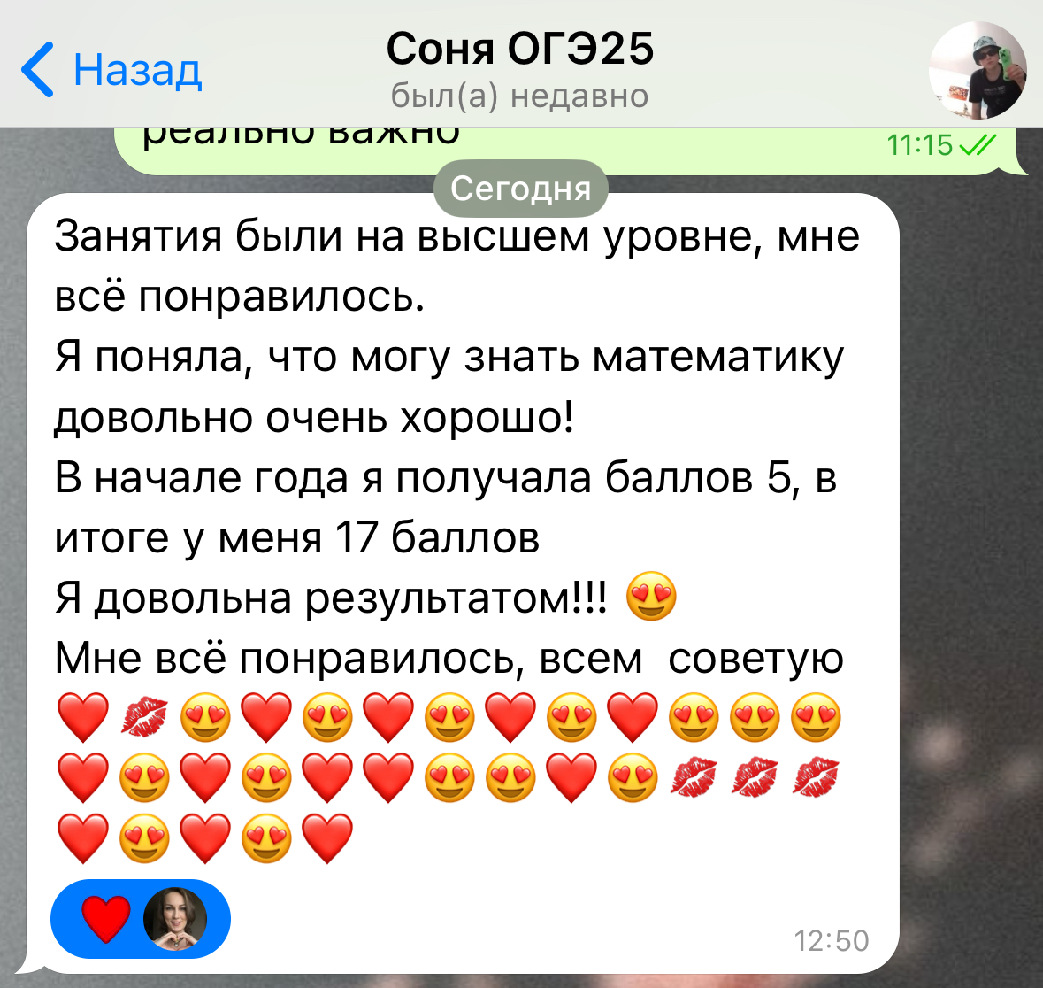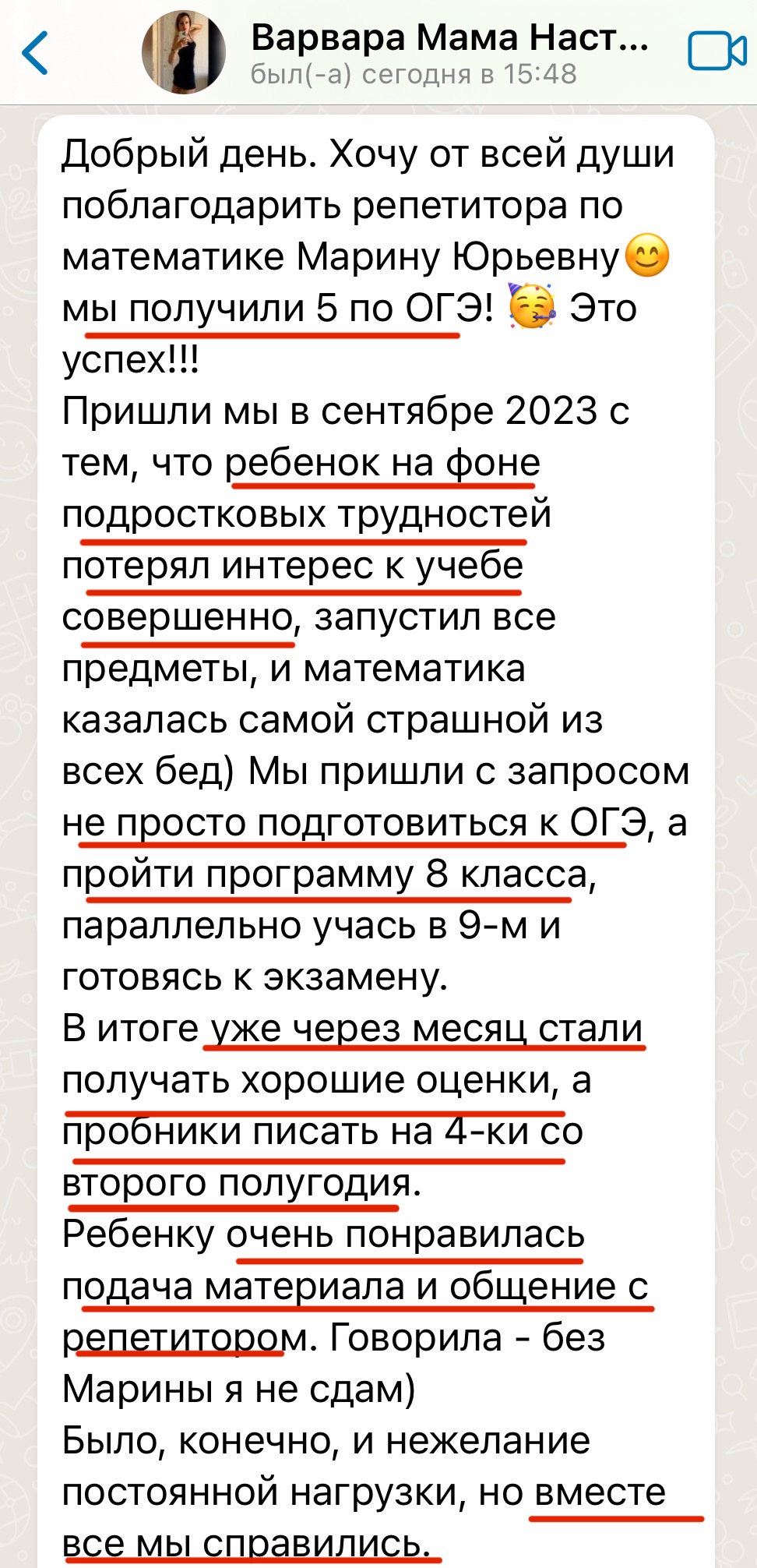 Каждый год повышаю квалификацию и улучшаю методику преподавания заданий 2 части ОГЭ и ЕГЭ, поэтому мои ученики знают все тонкости оформления и не теряют баллы на экзамене